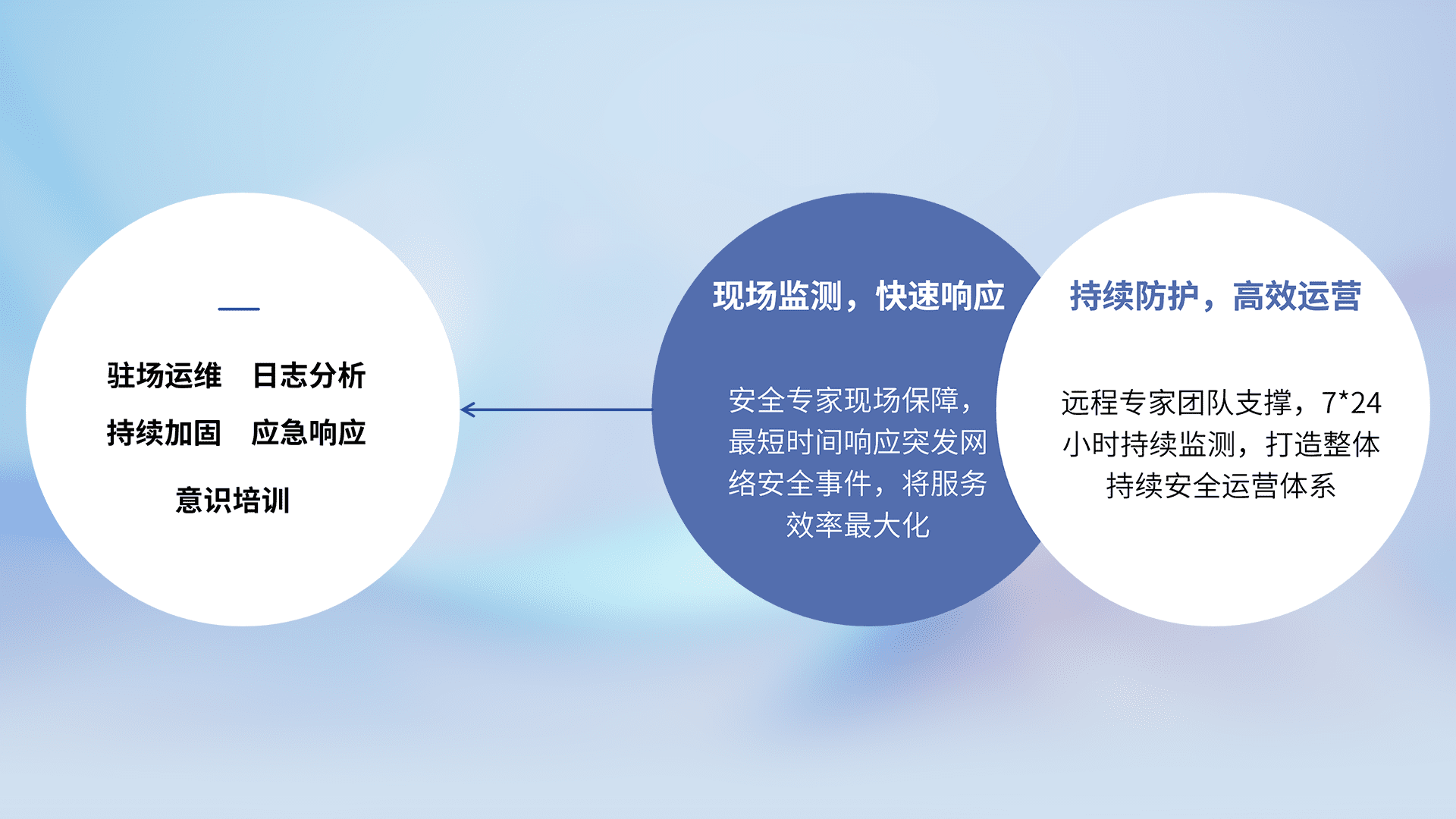 7X24小时持续监测安全事件,保持安全策略有效性,降低资产脆弱性风险,,精准拦截黑客攻击,,,,减少被黑客利用的机会,,,第一时间遏制,,,,降低损失。。。